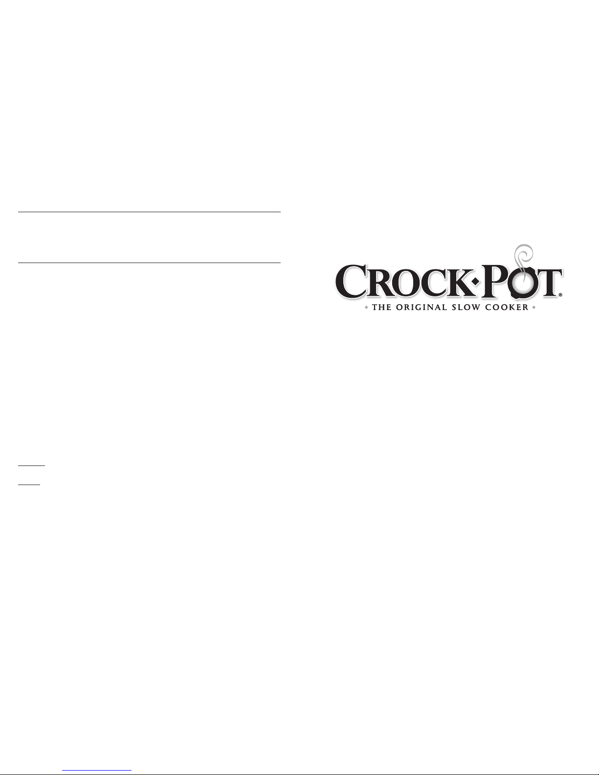 Consumer Service Department at 1-800-323-9519 or visit our website at www.crockpot.com.
