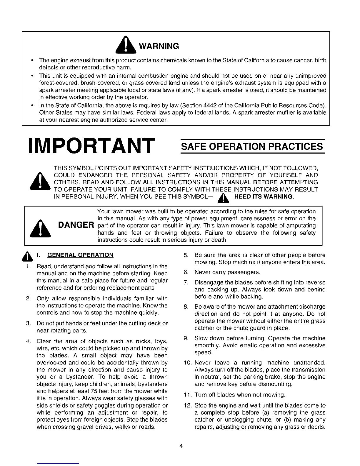 ,i_ WARNING - YOUR RESPONSIBILITY: Restrict the use of this power machine to persons who