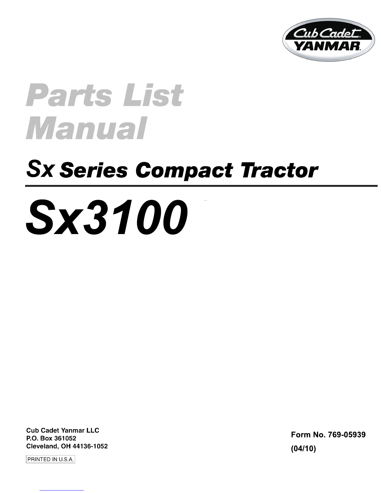 Cub Cadet Yanmar Sx3100 Scheda tecnica
