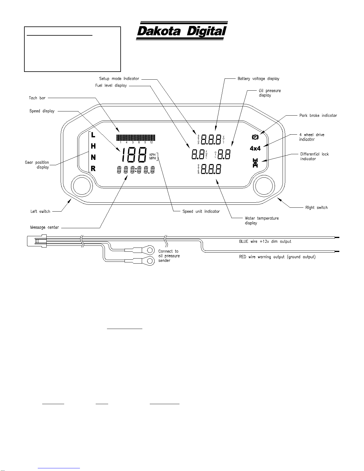 WN OUT Gauges that provide signal out are lit up, left switch to change, right switch to save