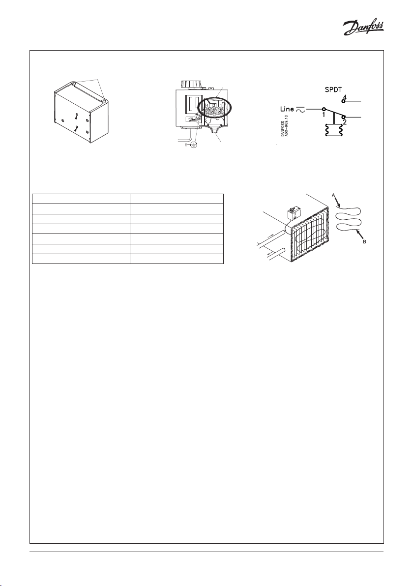 температуры ниже 5 °C контакты 1 – 4 размыкаются, а контакты 1 – 2 замыкаются (сигнальные контакты). Обратное переключение