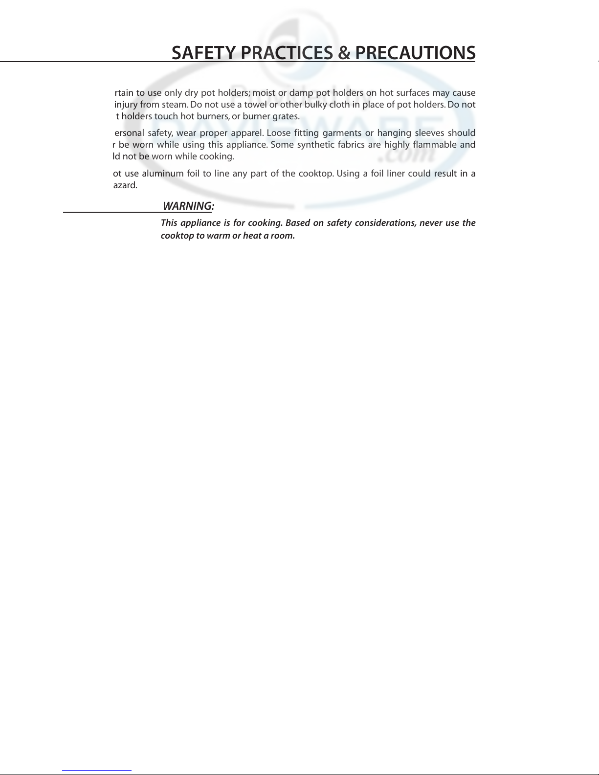 let pot holders touch hot burners, or burner grates.