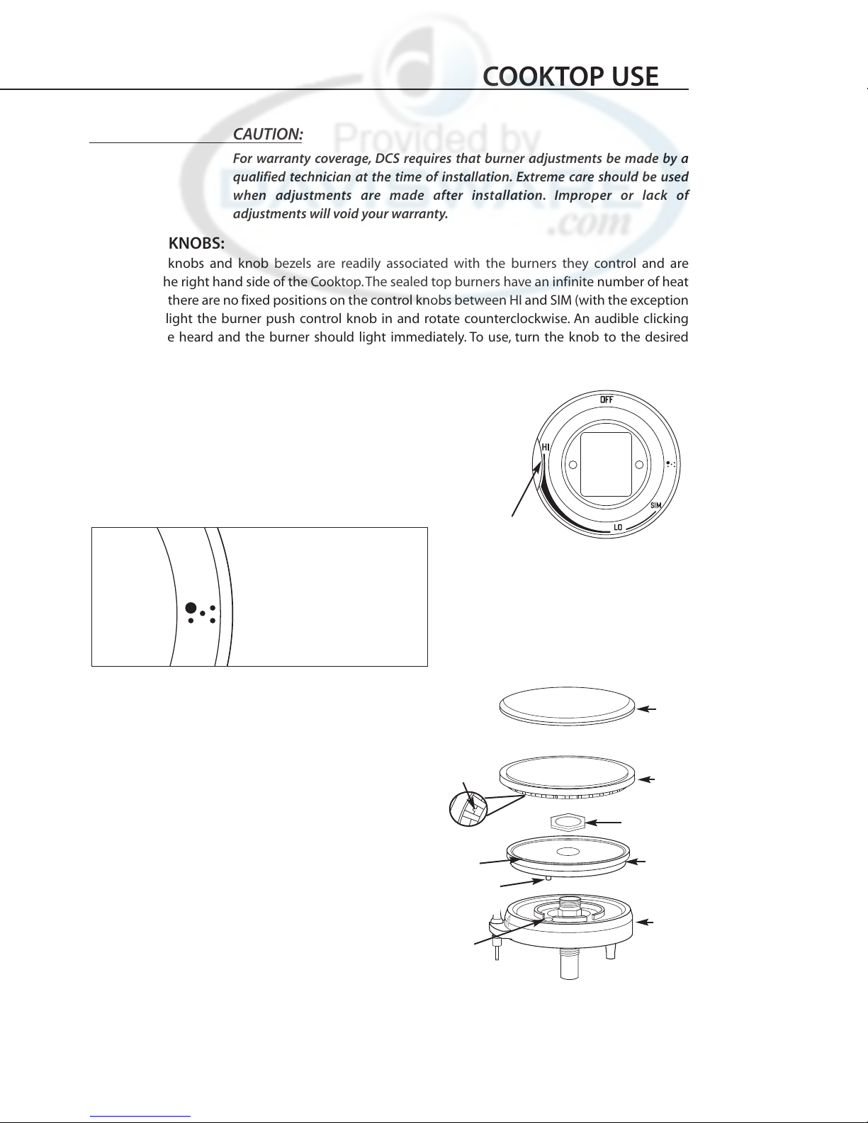 Areas adjacent to the burners may become hot enough to cause burns.