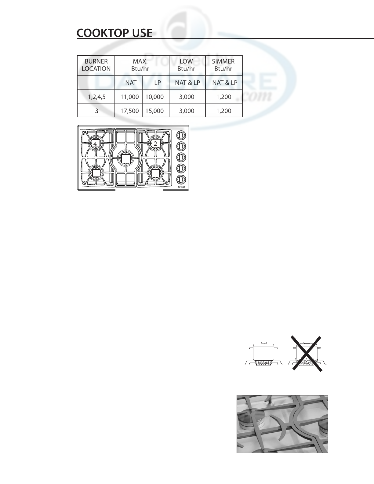 undersized utensils will expose a portion of the flame to direct contact and may result in