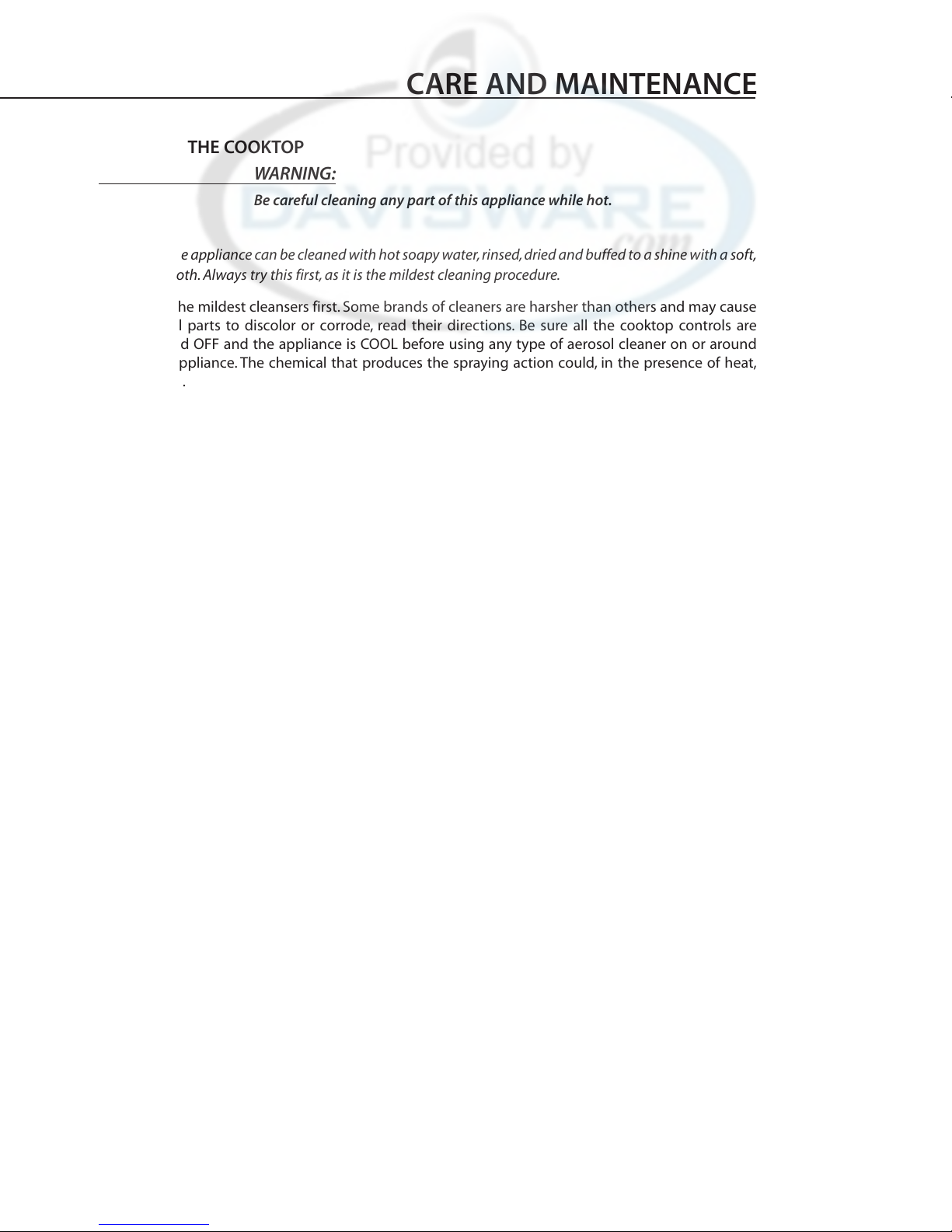 the cooktop while it is hot. Some cleaners produce noxious fumes if applied to a hot surface.