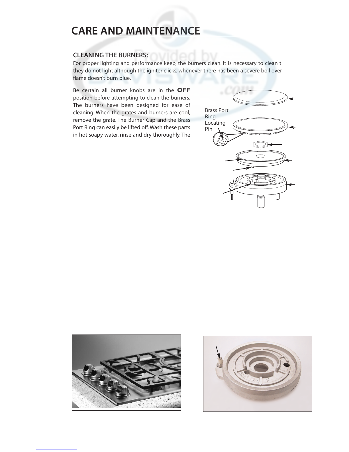 For proper lighting and performance of the cooktop burners, keep the burner ports clean. It