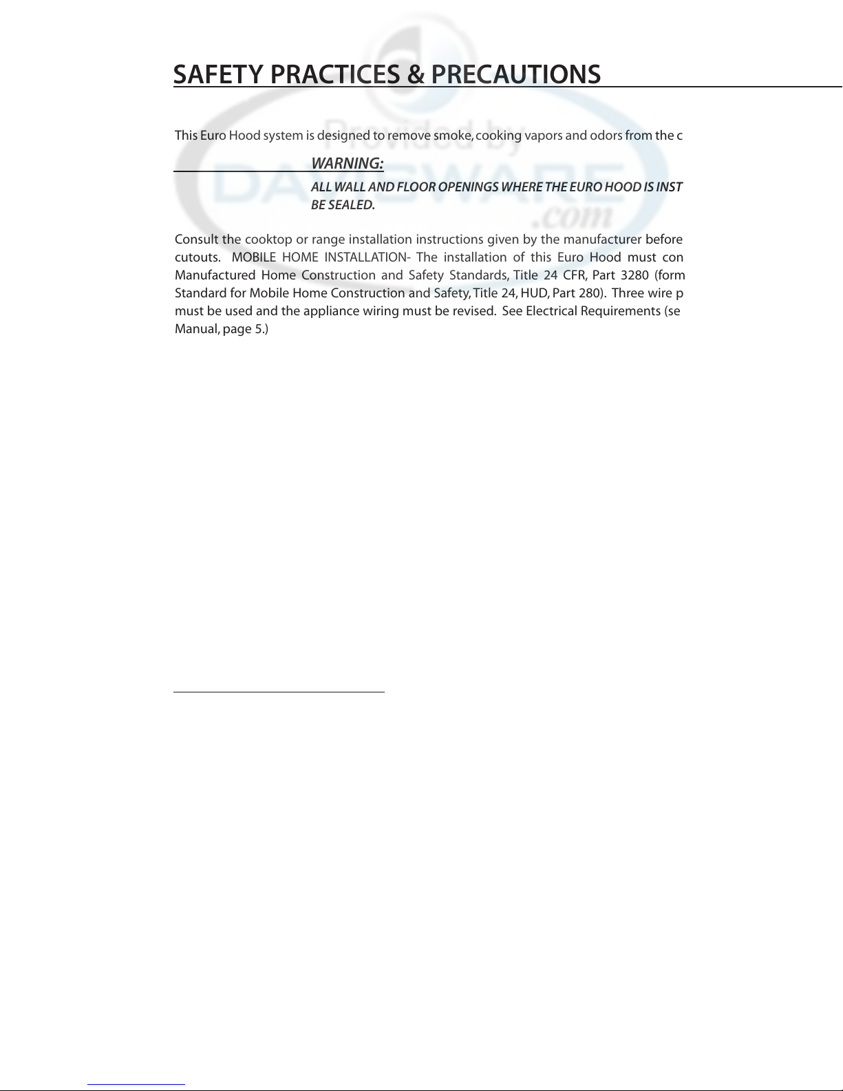 cutouts. MOBILE HOME INSTALLATION- The installation of this Euro Hood must conform to the