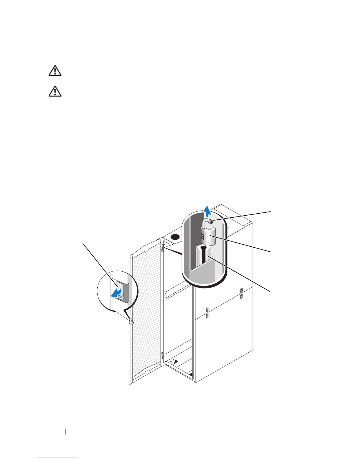 WARNING: Avoid rolling the rack cabinet over rough surfaces. Hard impacts to