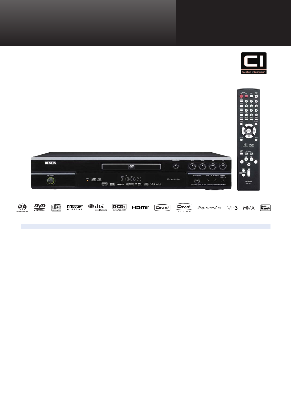 The DVD-1940CI is endowed with technology to unleash the full impact of DVD-Video picture quality. The DVD-1940CI also