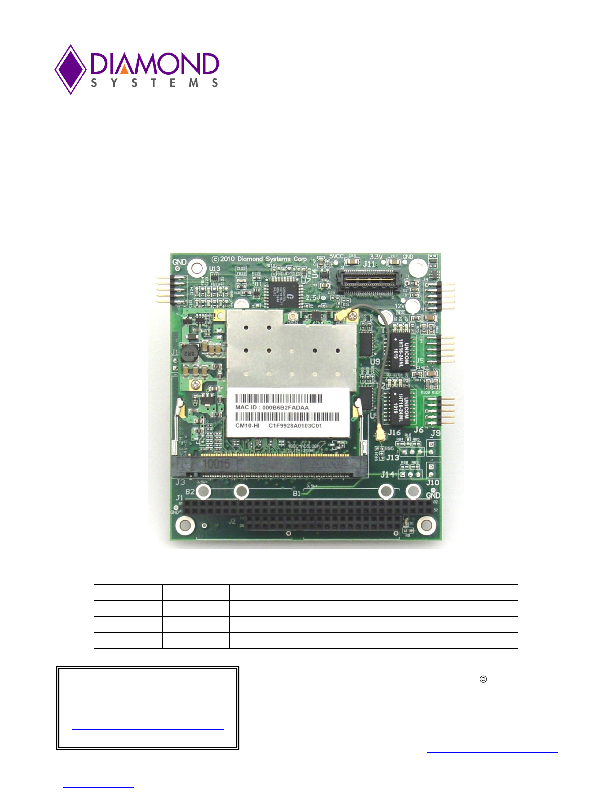 CORONA User Manual Rev A.11 www.diamondsystems.com Page 3