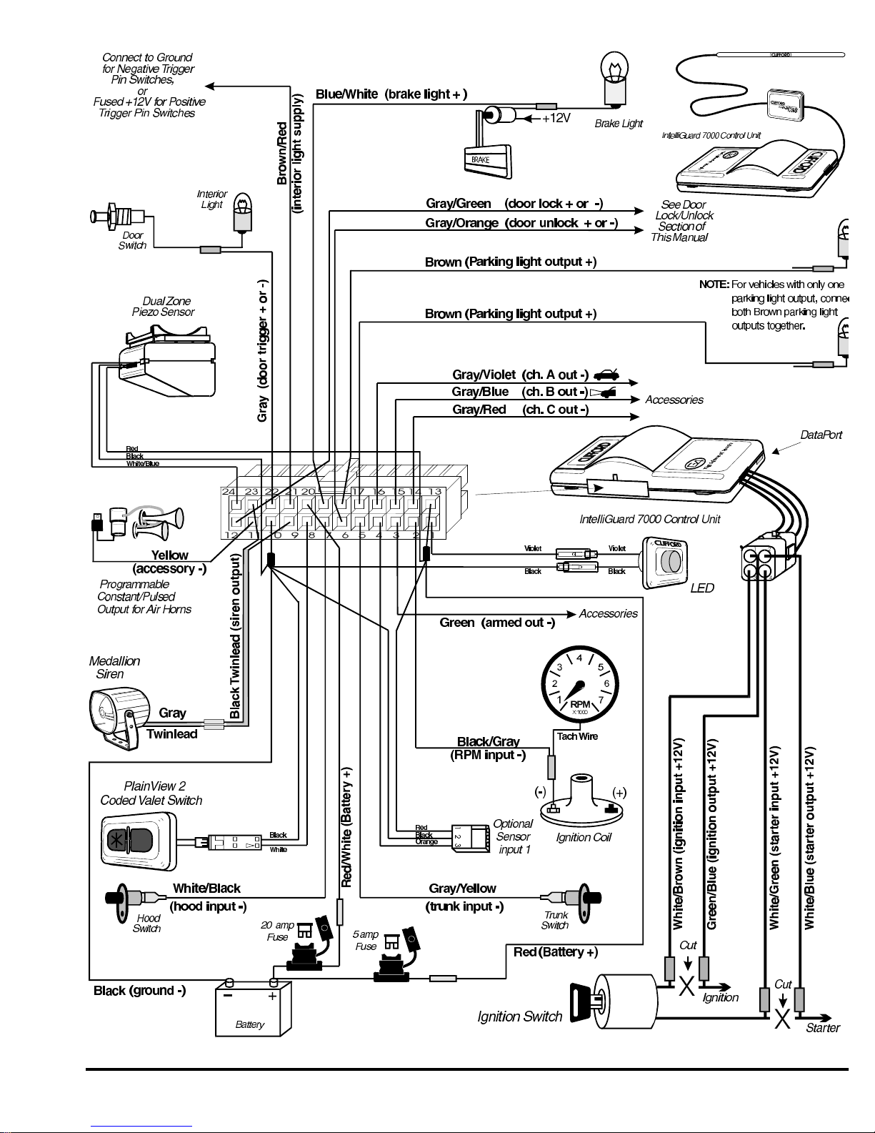 The auxilliary A output (GRAY/VIOLET wire) can be programmed as either pulsed, latched or timed andcan be programmed to