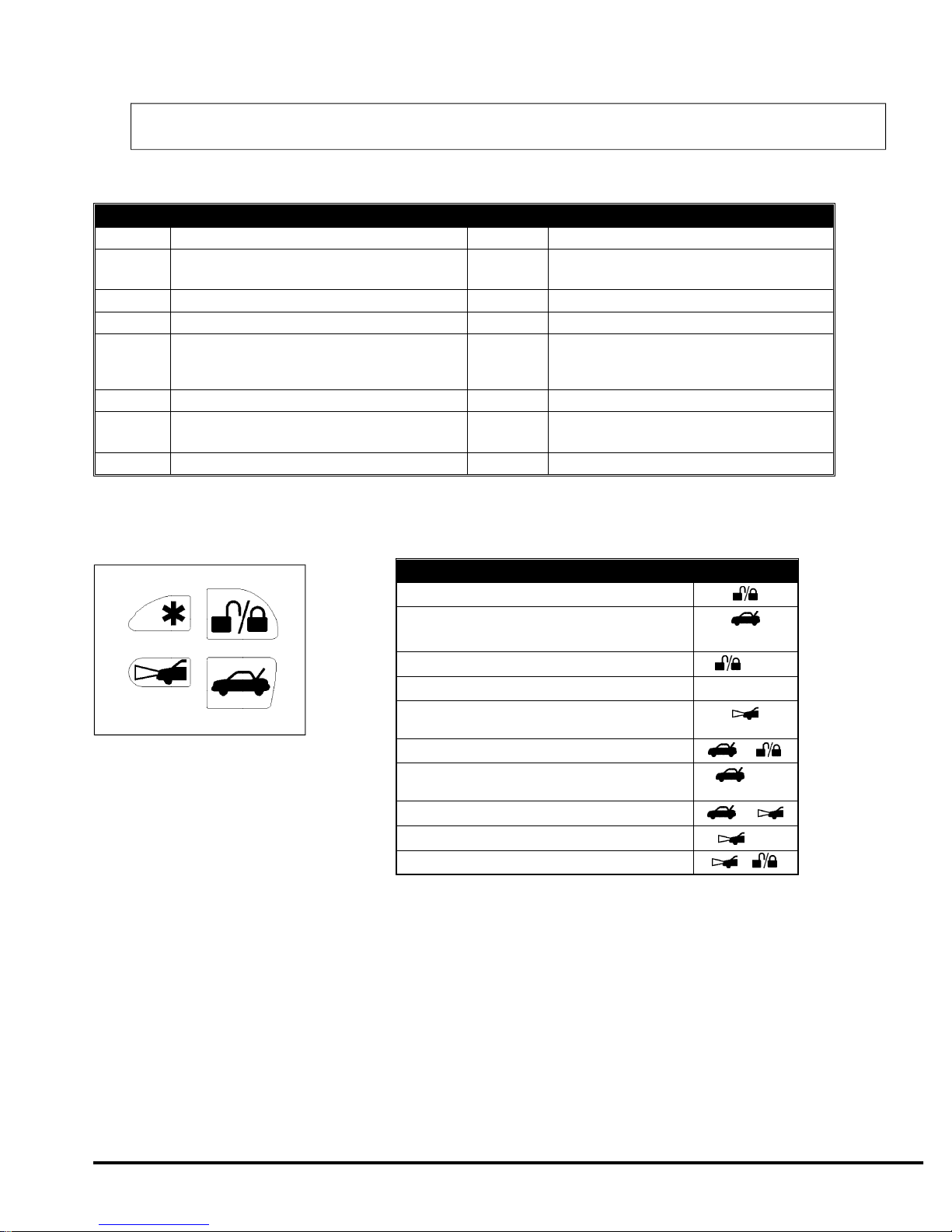 operate only when the system is disarmed (e.g., for use as a remote trunk release). Auxilliary A output is activated by pressing the