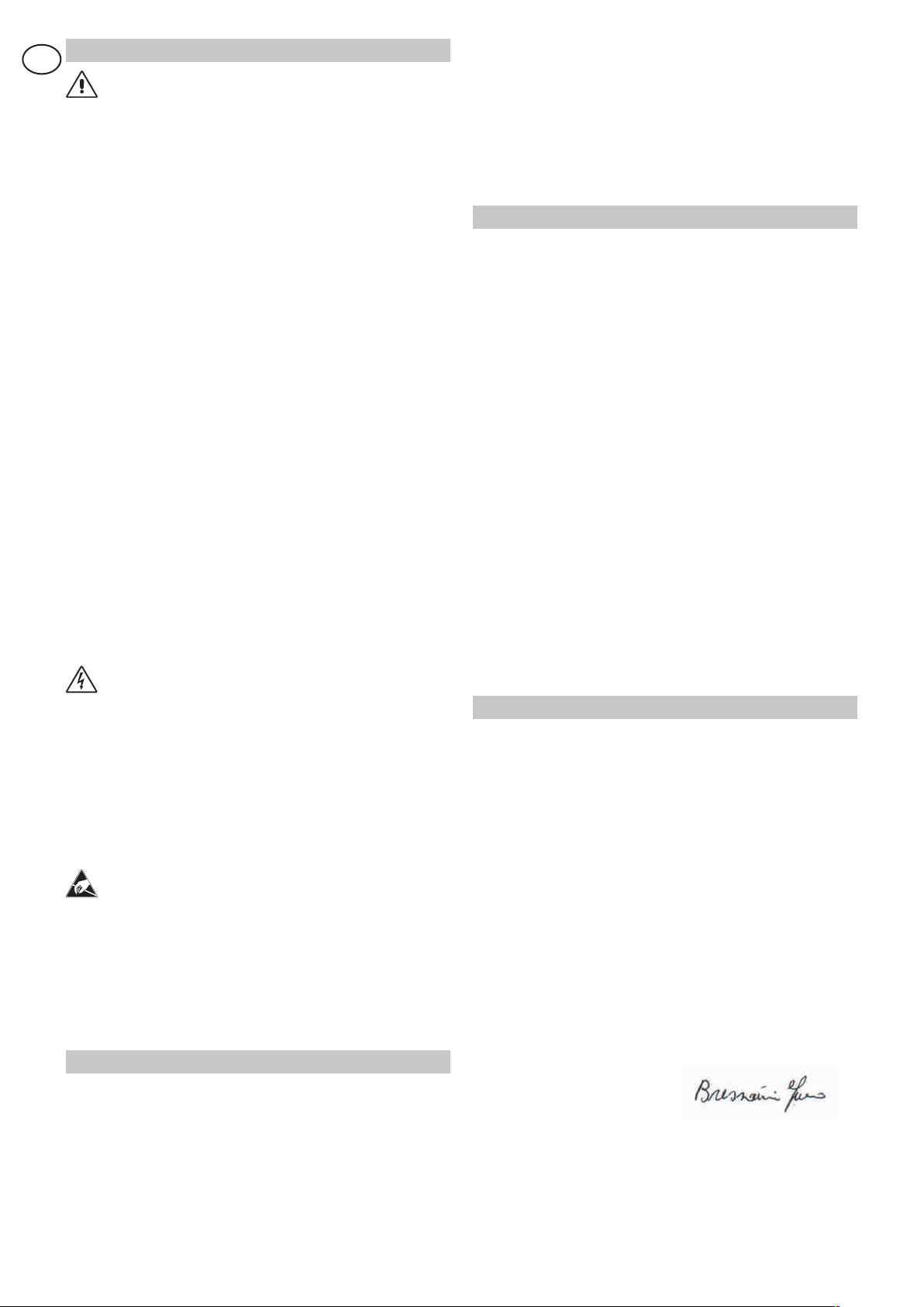 AVVERTENZE GENERALI PER LA SICUREZZA