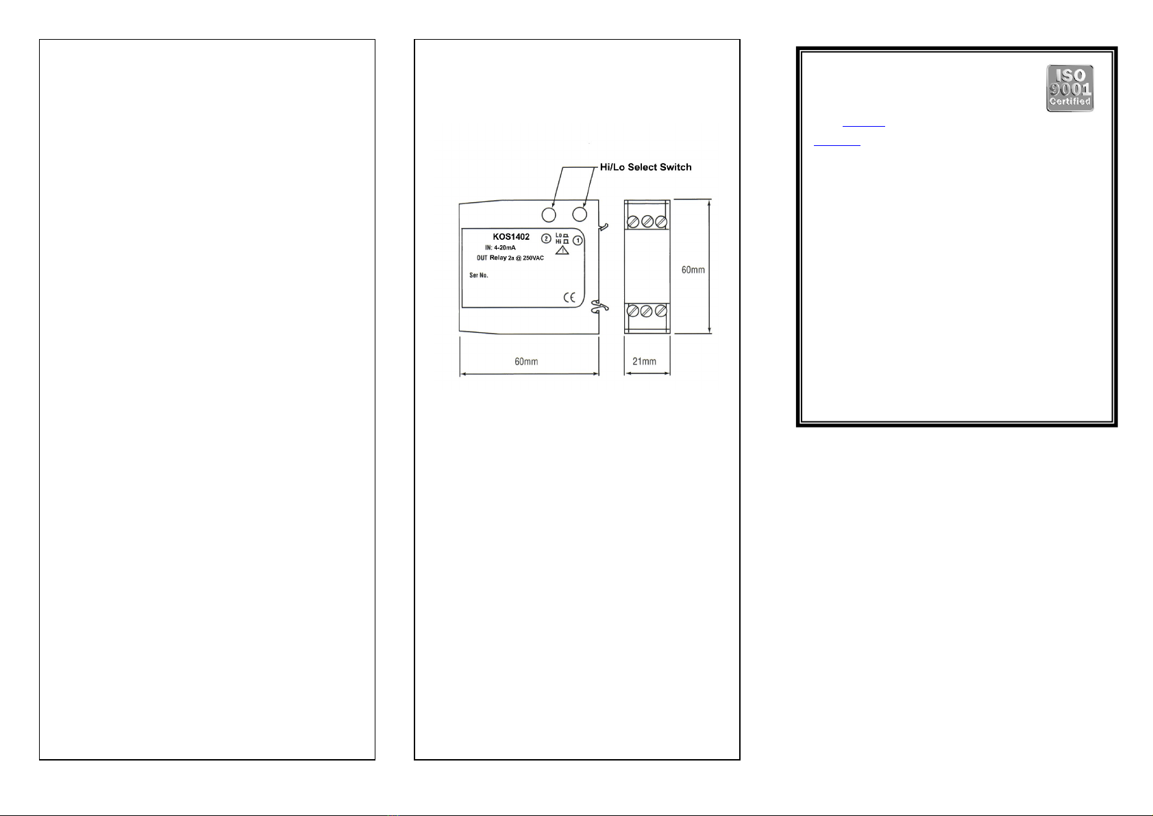 opening of the relay contacts. The KOS1402 must not be located near a