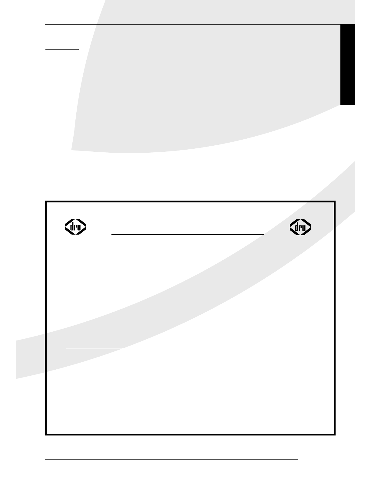 • Under no circumstances shall DRU be liable for incidental, consequential, special or contingent damages or expenses arising directly or indirectly from any