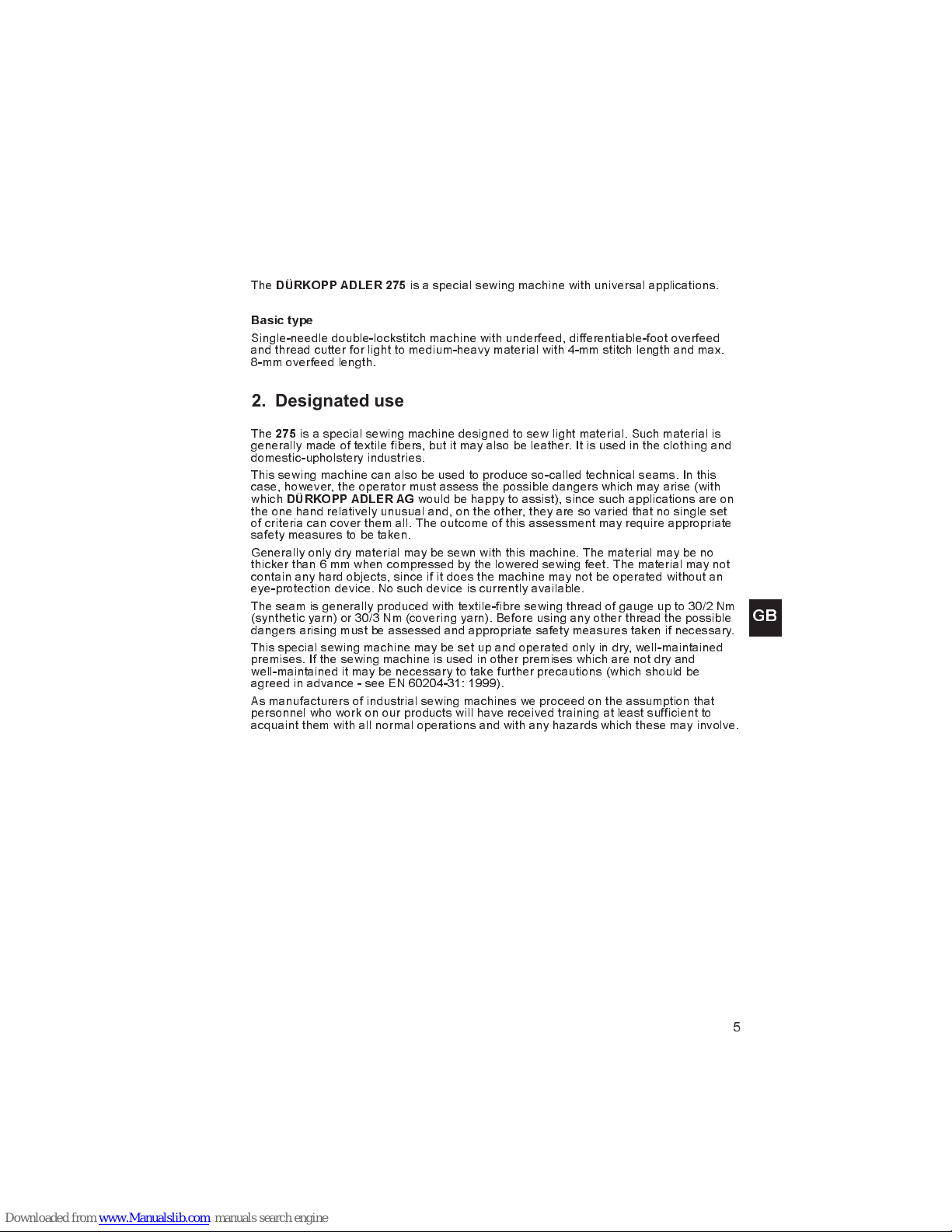 DURKOPP ADLER 275 Series Manuale utente