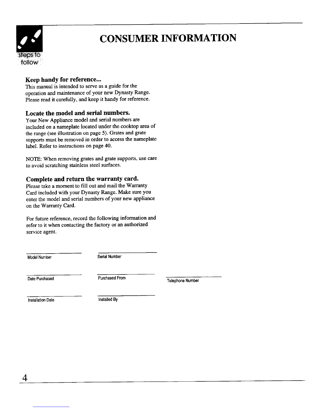 Please read beforeoperatingyour new Dynasty Range