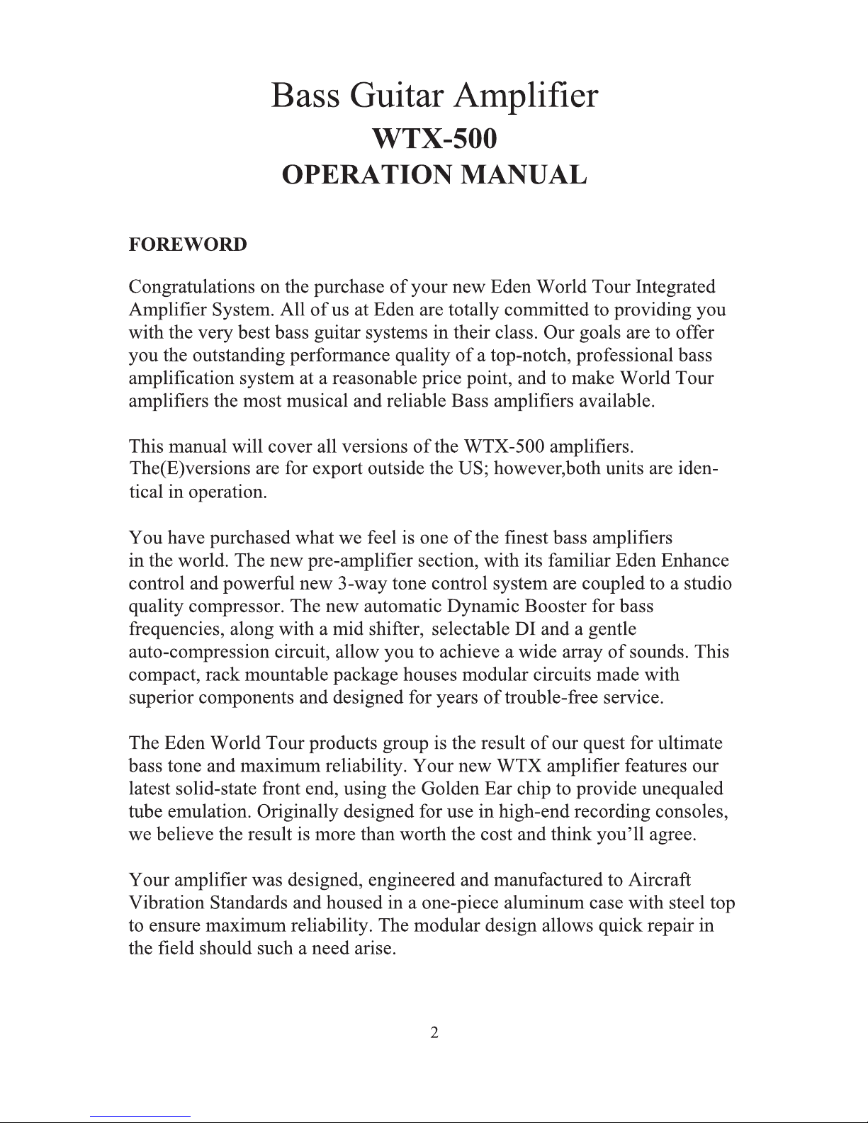Eden WTX-500 Manuale utente