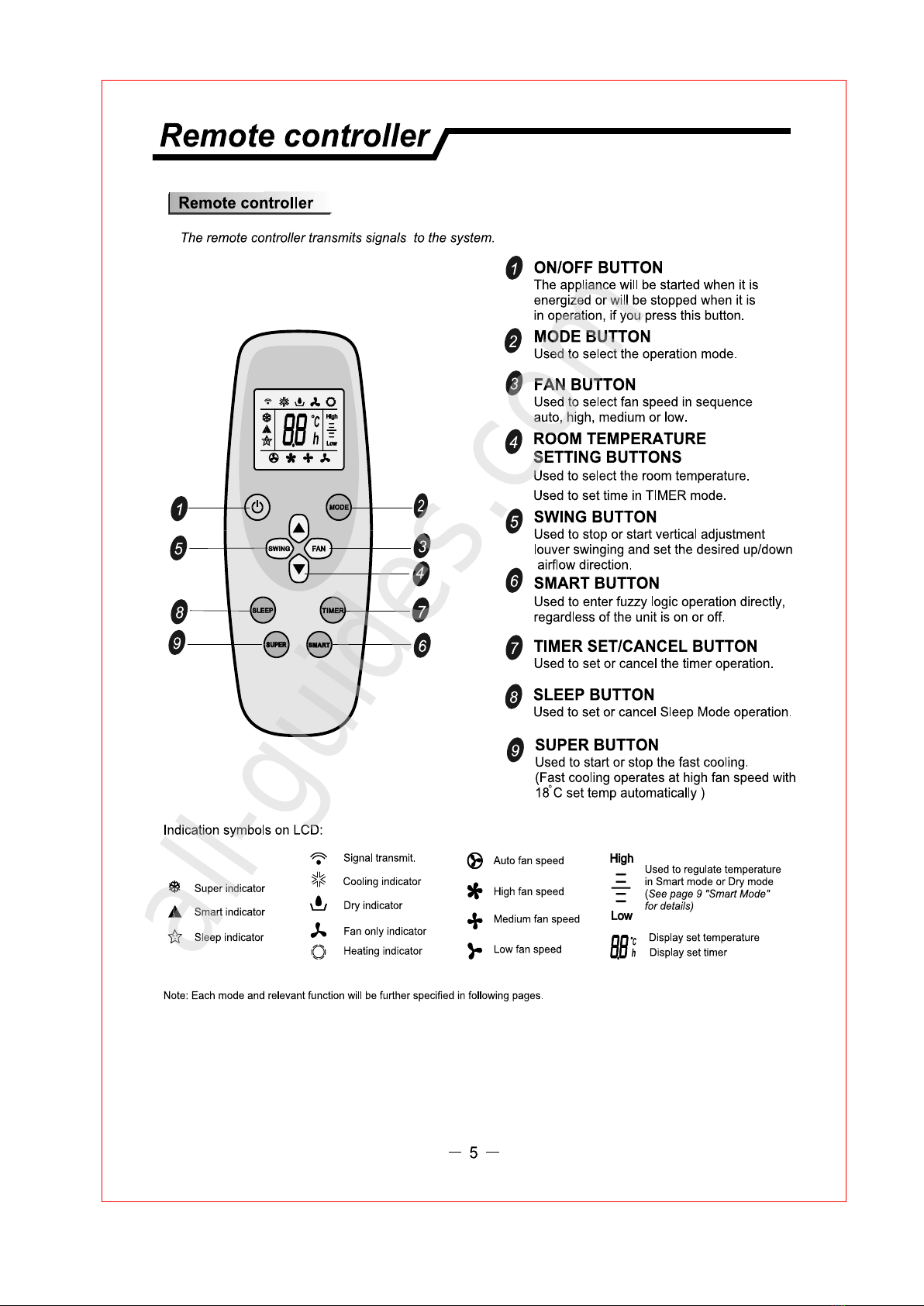 Each time after the remote controller replaces batteries or is energized, auto presettingremote controller