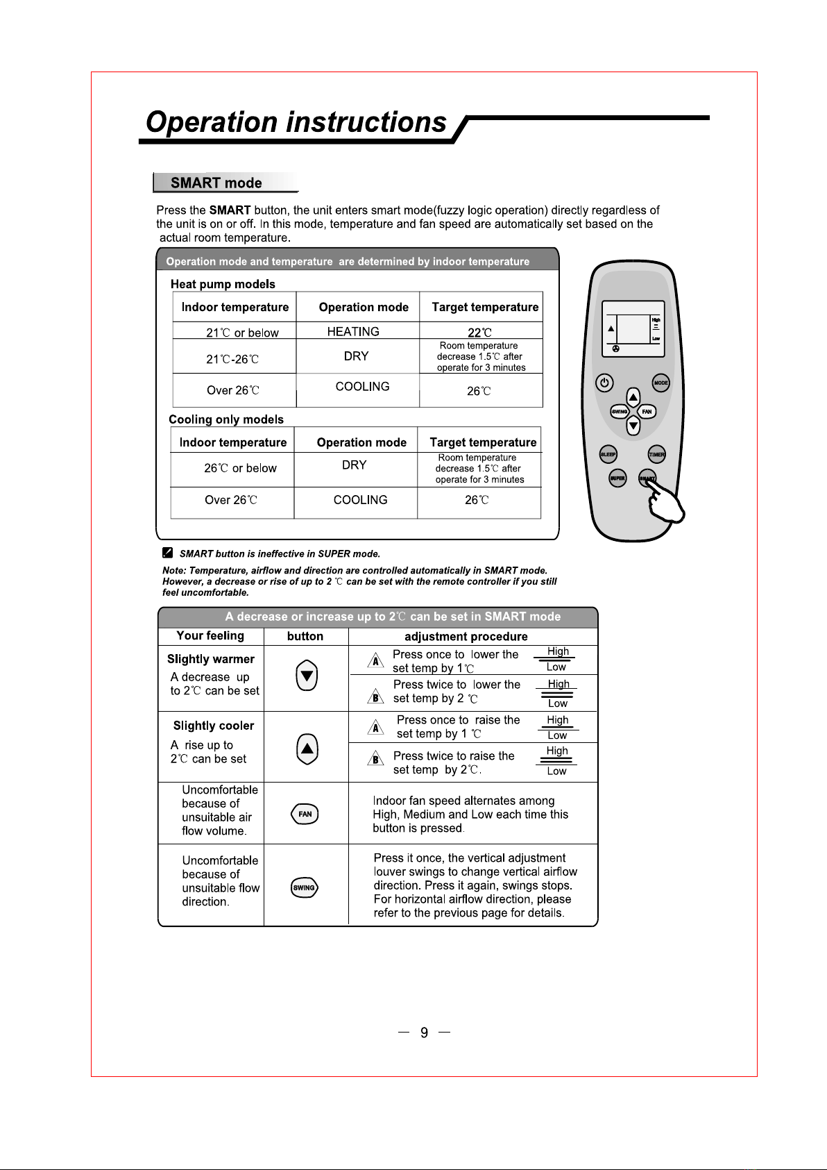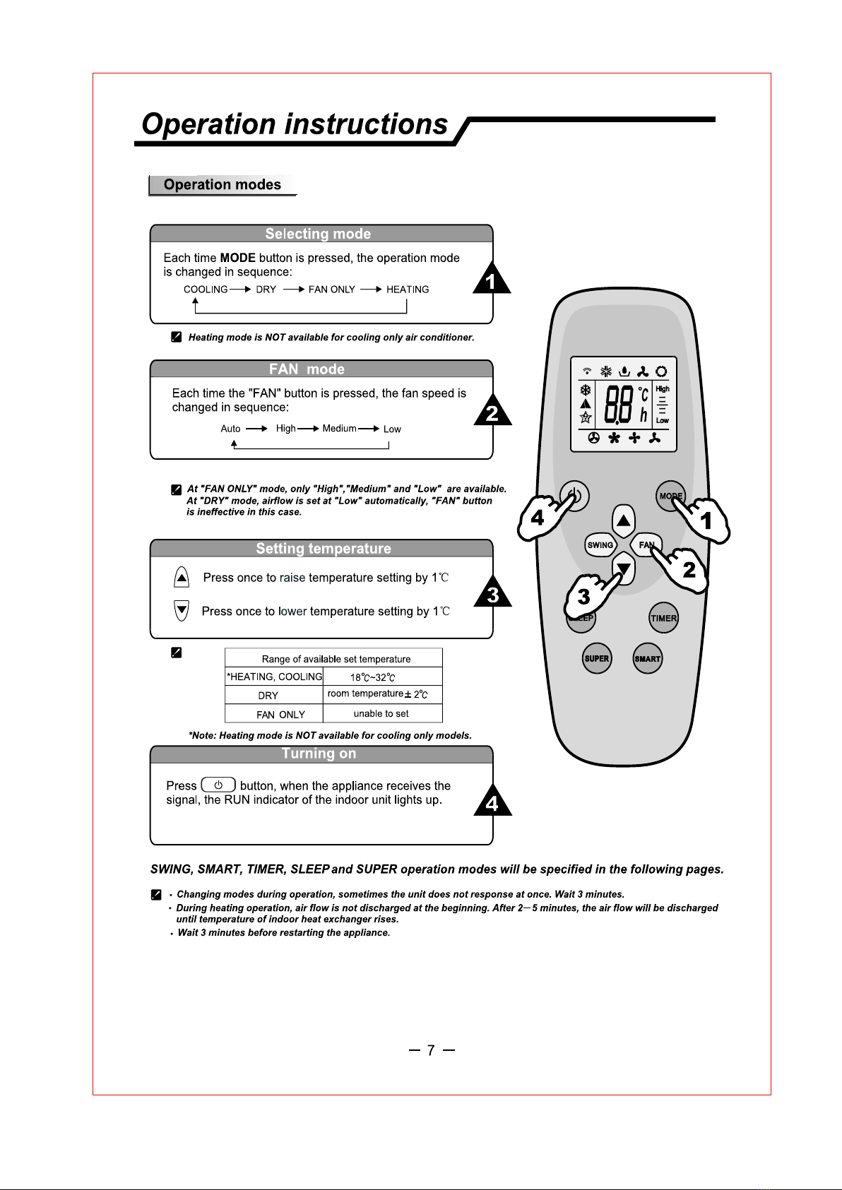heat pump.If the air conditioner you purchased is a Cooling Only one, but you preset the remote controller