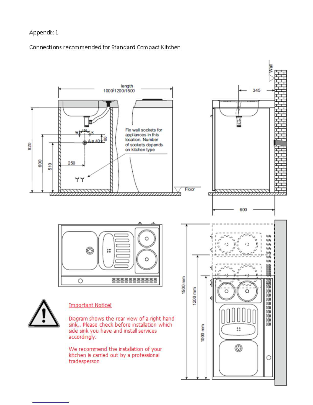 The kitchen must be placed on a firm level surface, there