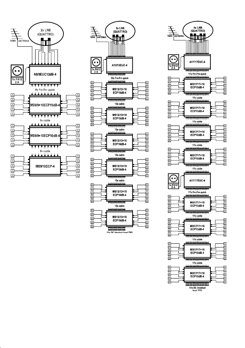 •Connect input connectors marked “TERR”, “A”, “B”, “C”, “D” to outputs of LNBs or preceding