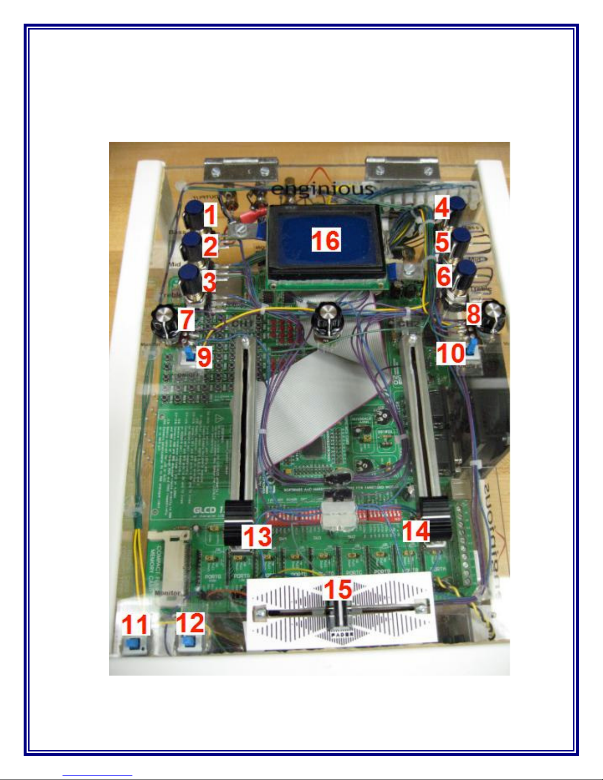love including 3-band equalizer, volume control, monitor functionality, GLCD