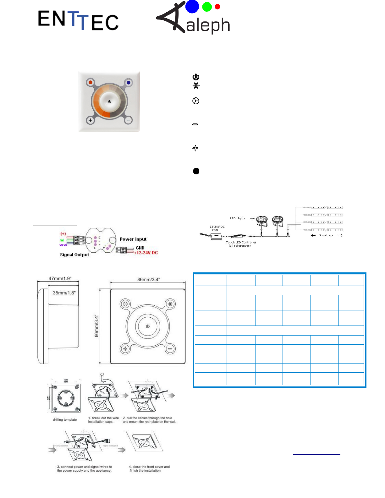 strips driving up to 8 Amps. Its touch-ring allows 256 levels