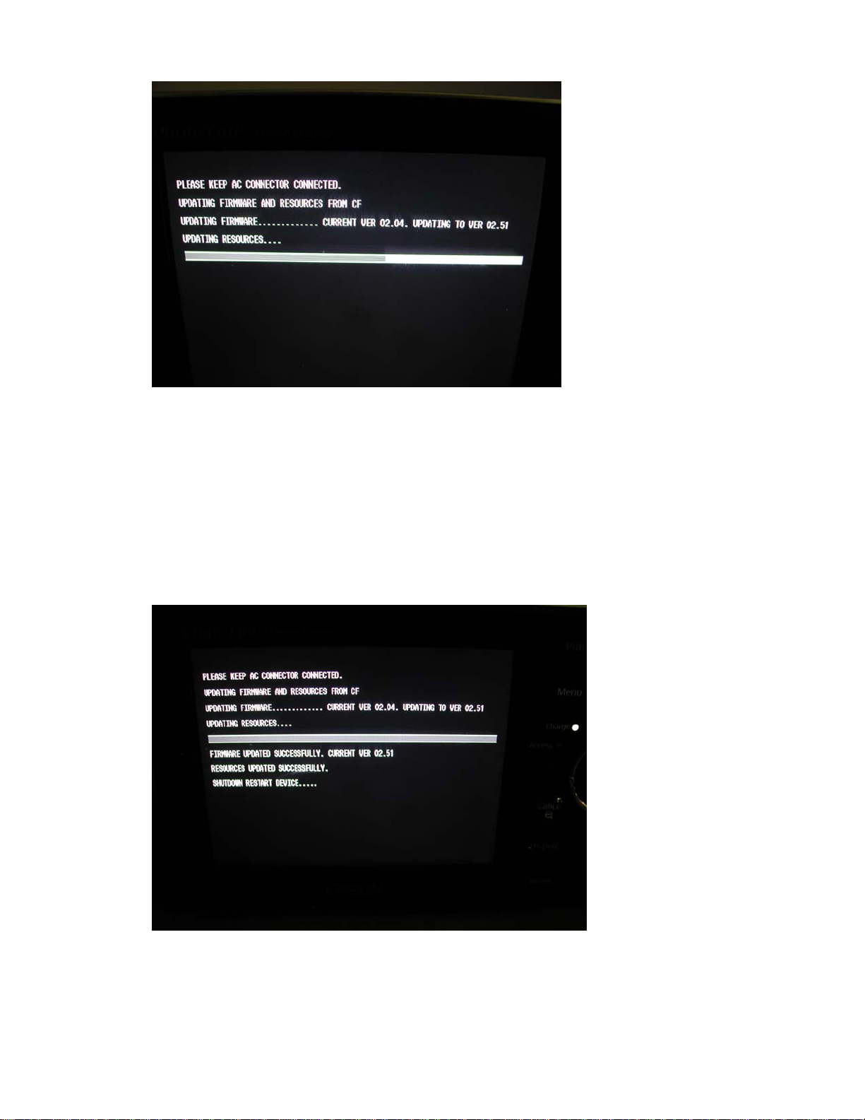 6. The firmware process is completed when you see the message “Resources Updated