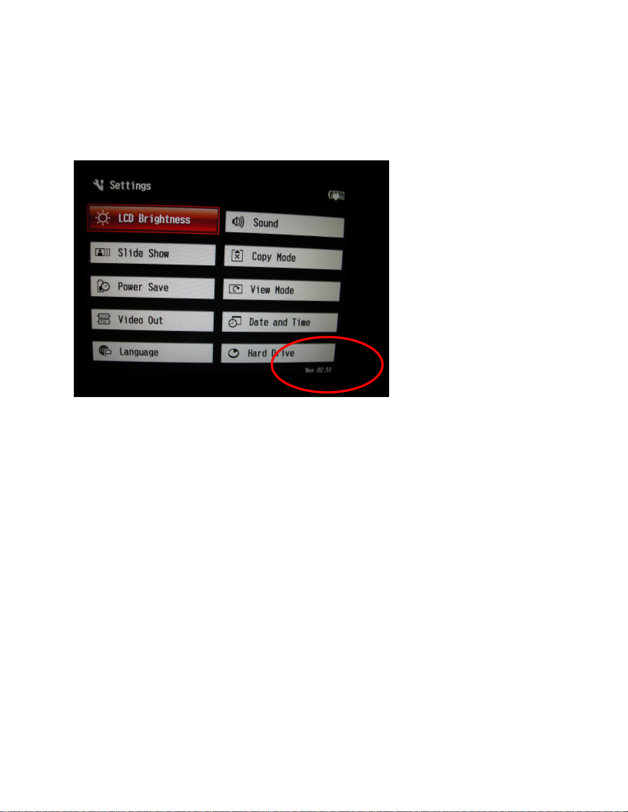 To verify the firmware version, power on the unit, select Settings in the
