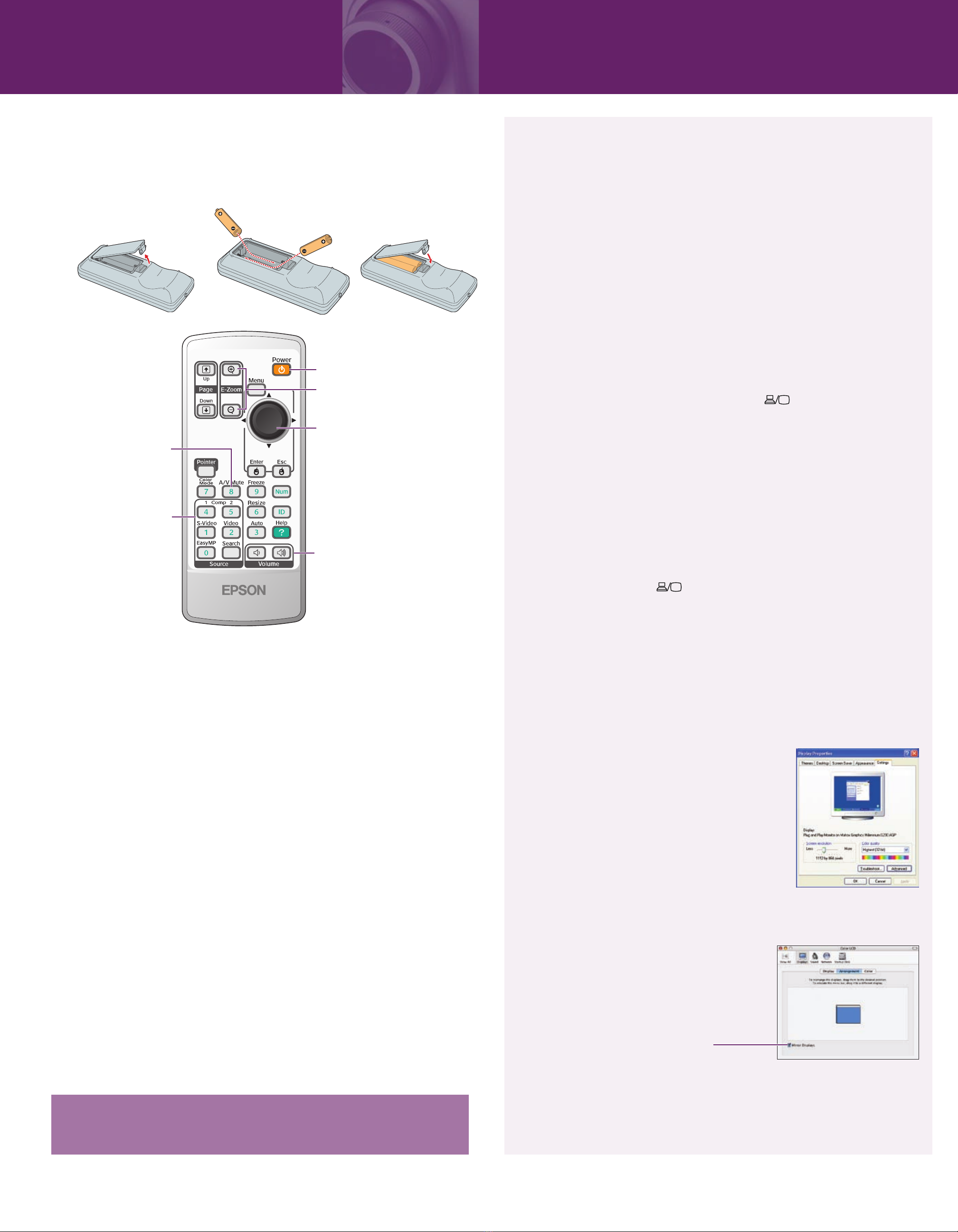on using the remote control, see your User’s Guide.