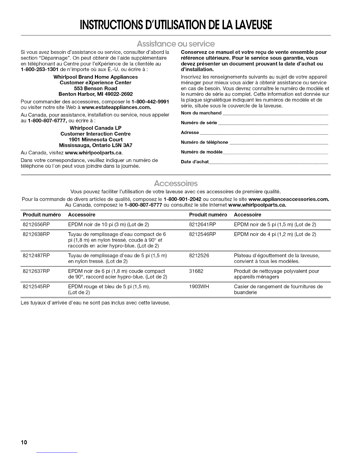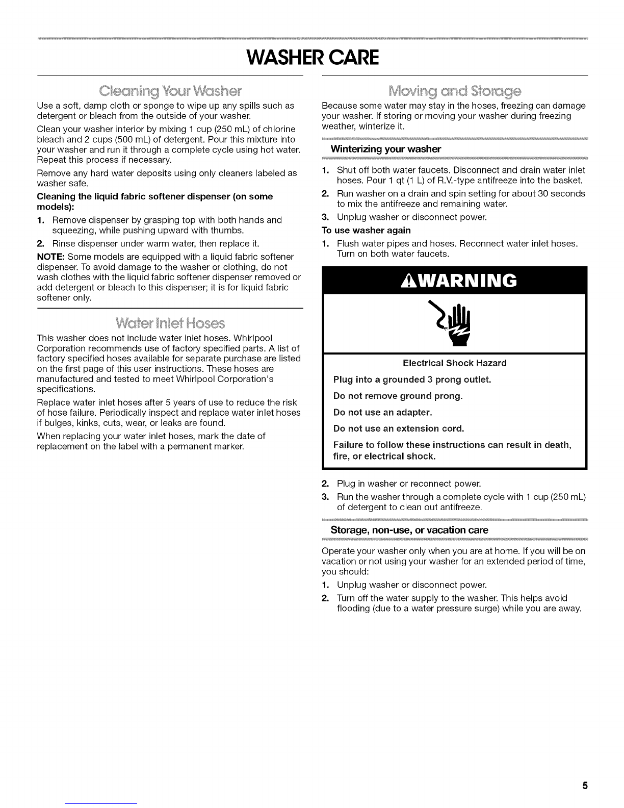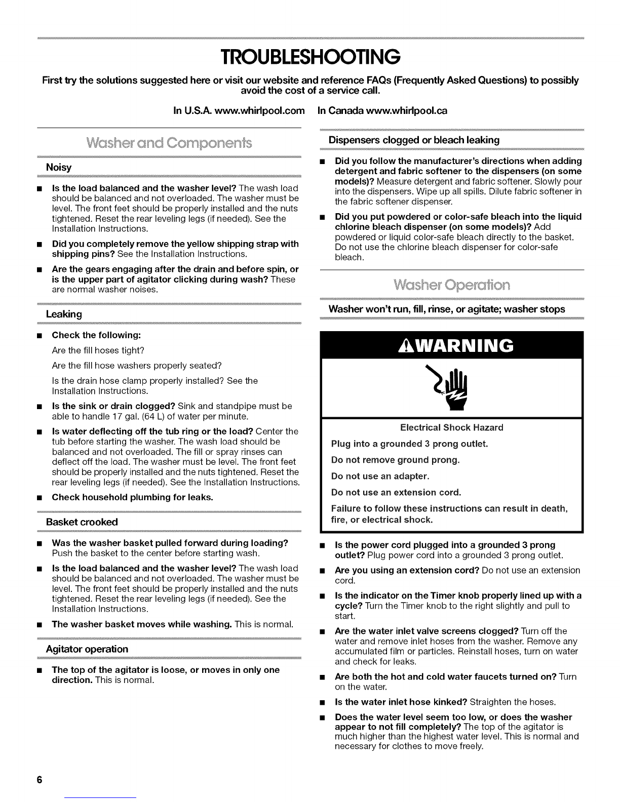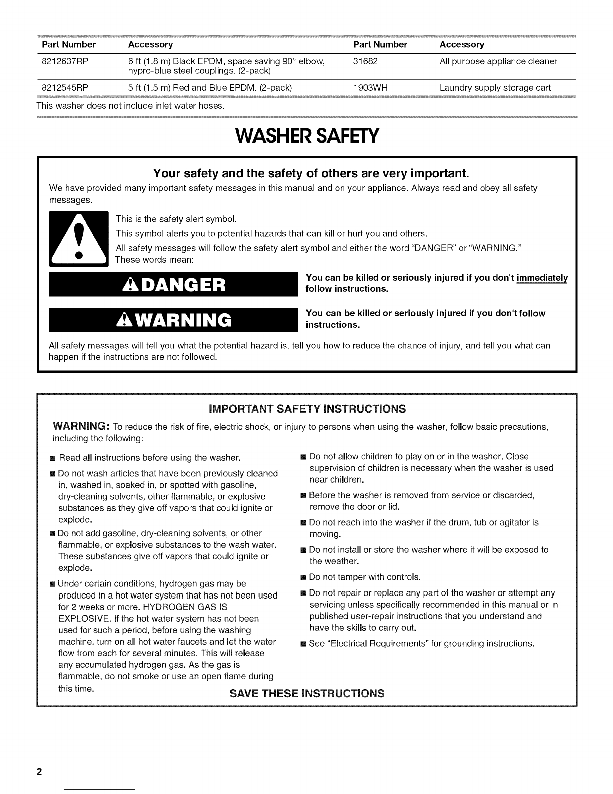 Installation Instructions for proper installation of drain hose.