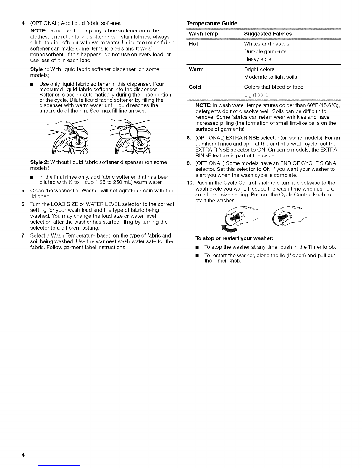 portion of a cycle only. Do not drip fabric softener on clothes.