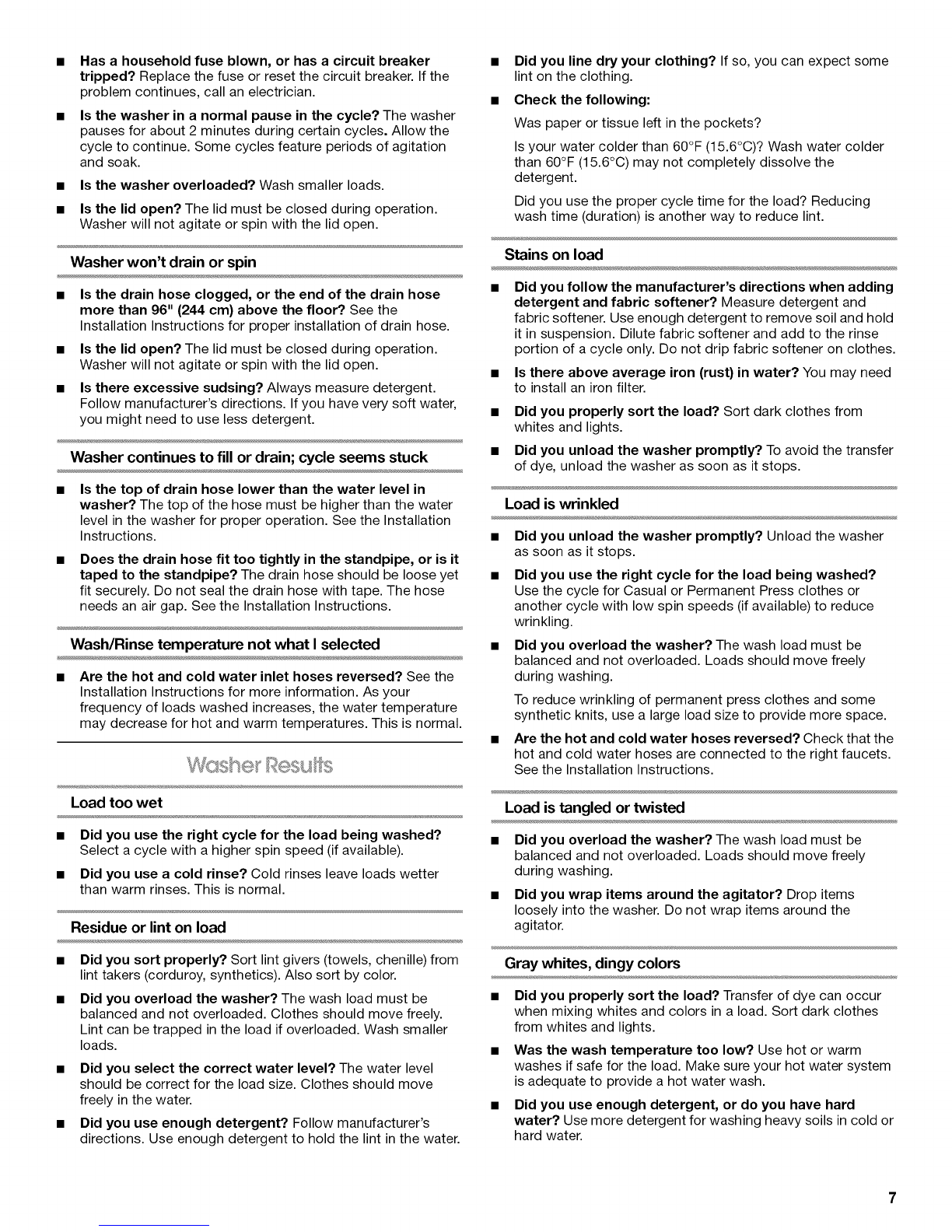 •Did you use the right cycle for the load being washed?