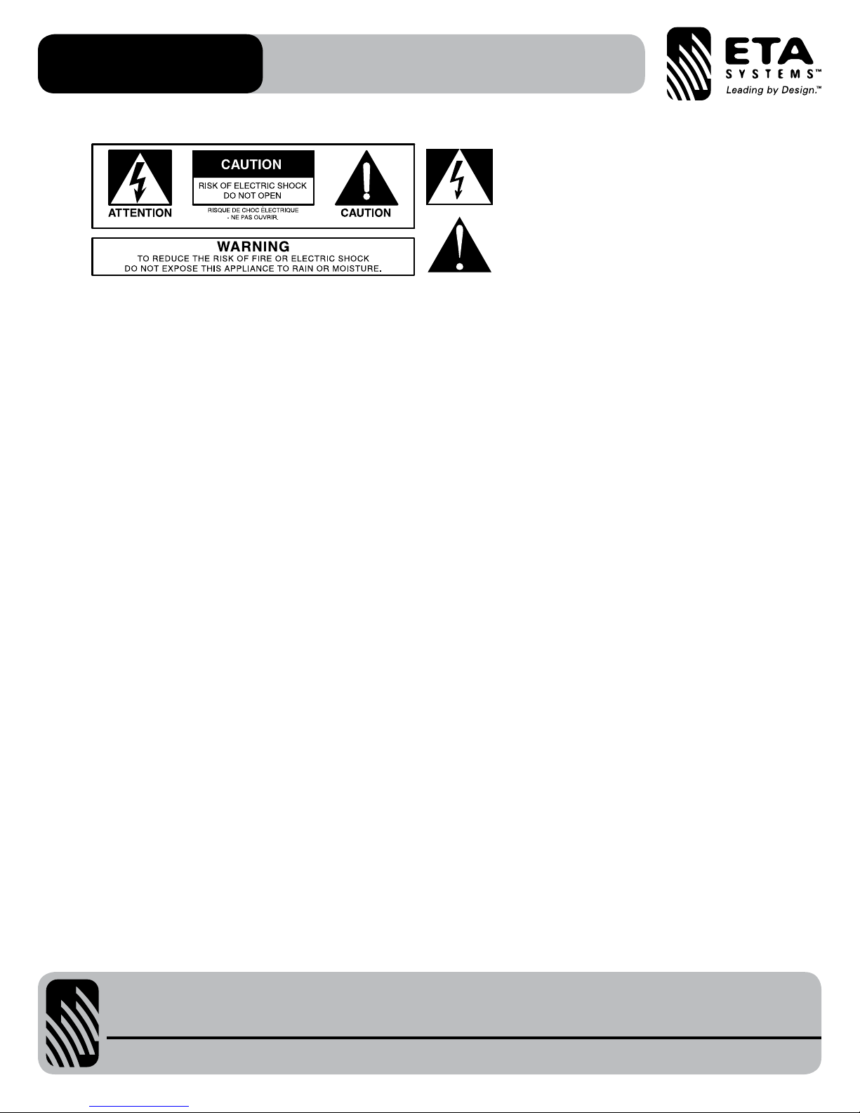 AC outlet and contact ETA Systems. Do not to attempt to continue operation with the product as this may cause fire or electric shock: