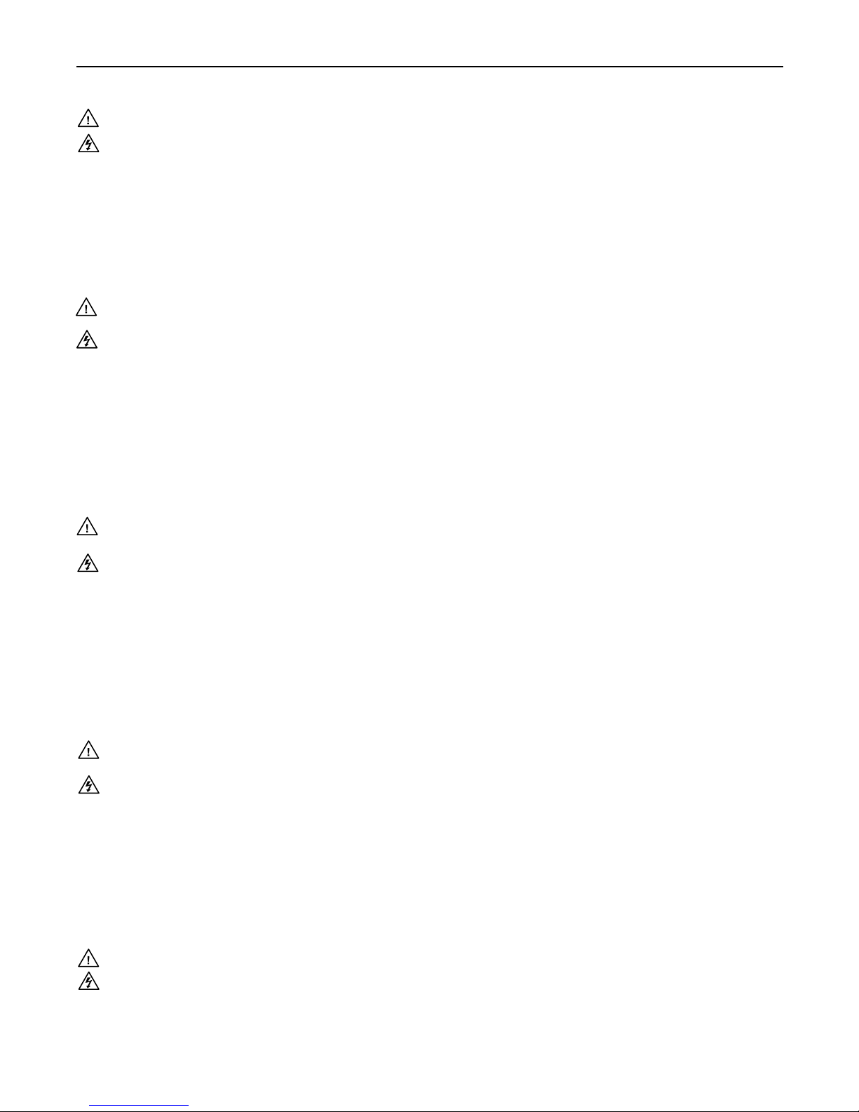 eines elektrischen Schlags und/oder andere Gefahren bestehen.