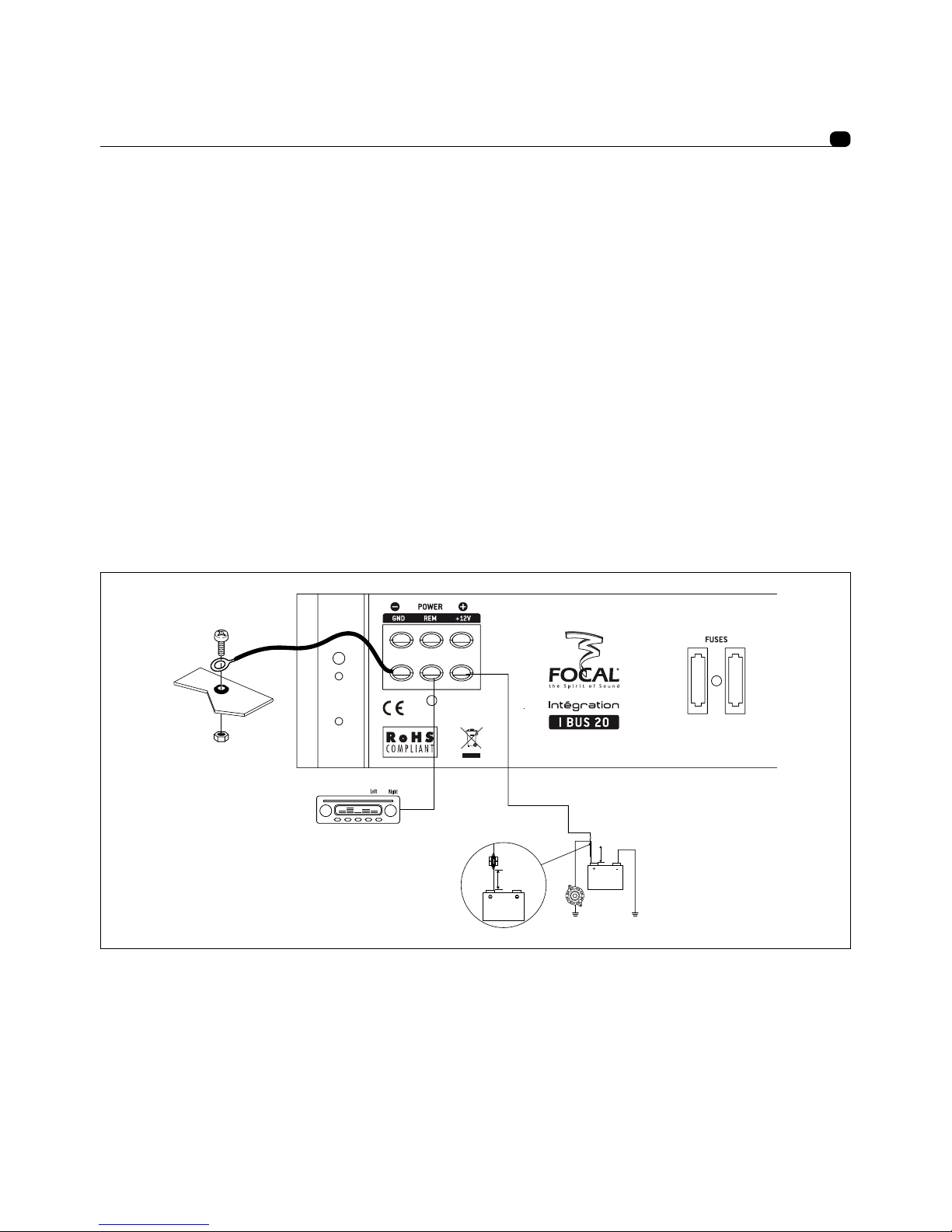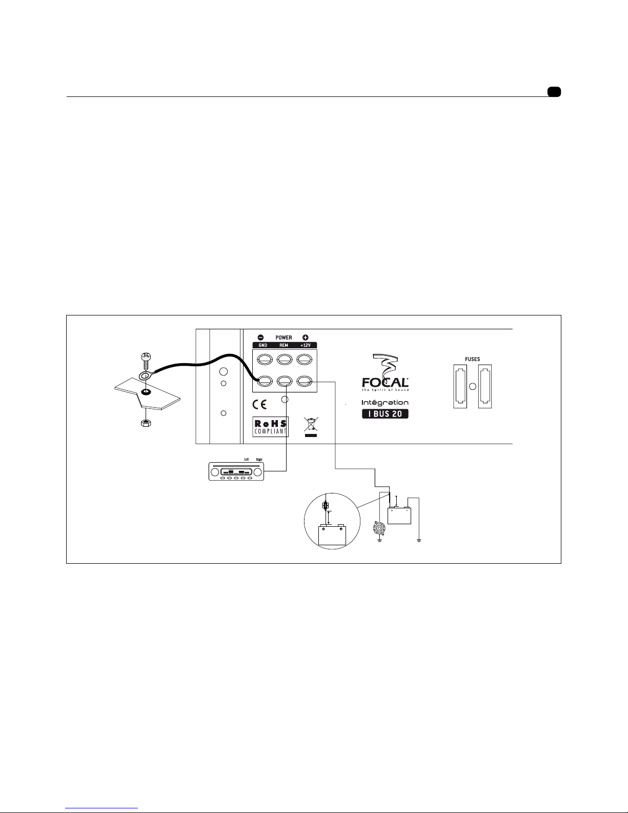 +12V : Le connecteur d’alimentation +BATT est dédié à recevoir le câble d’alimentation assurant la liaison entre