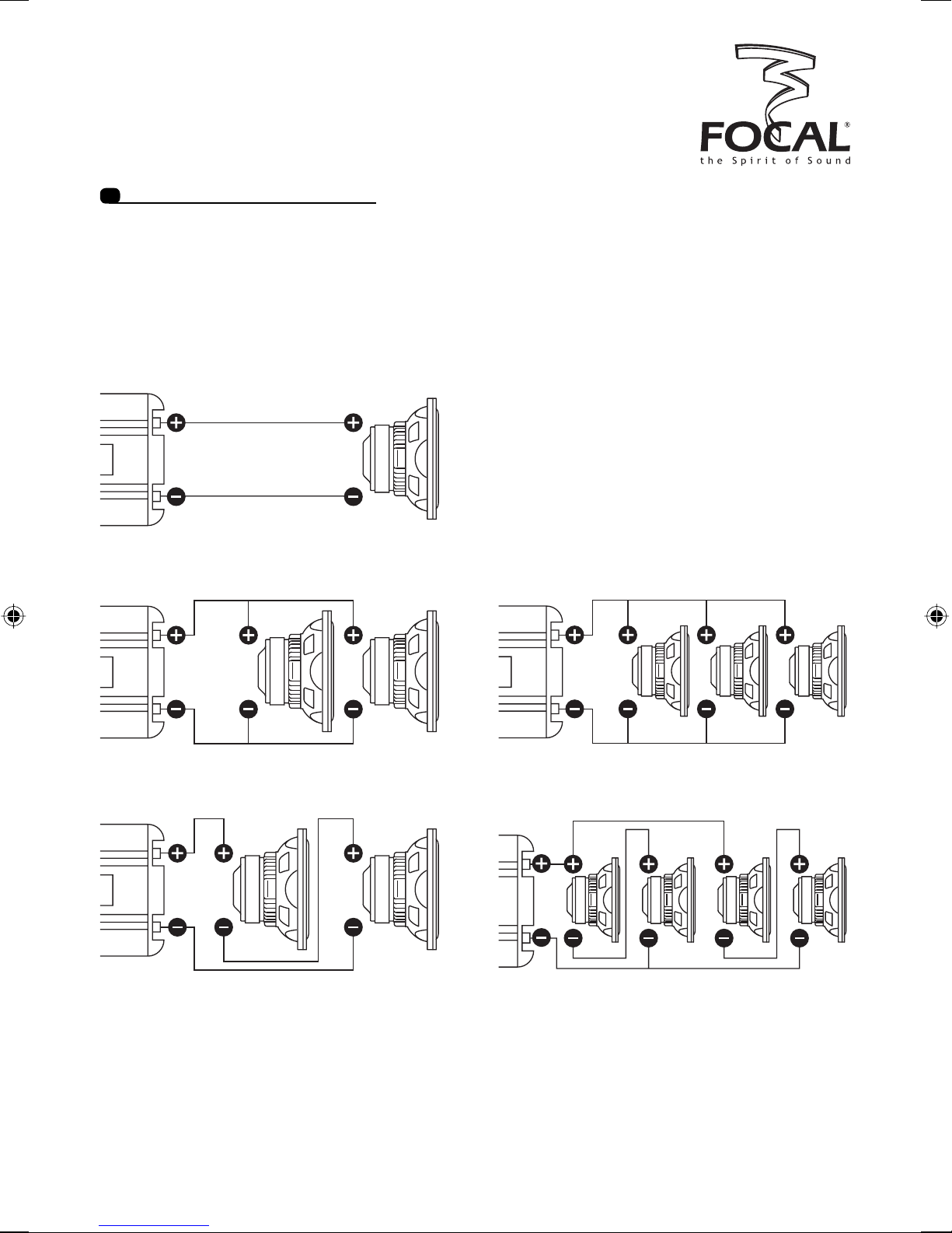 • 2 subwoofers : Z = R1 + R2 Z = 4Ω + 4Ω Z = 8Ω