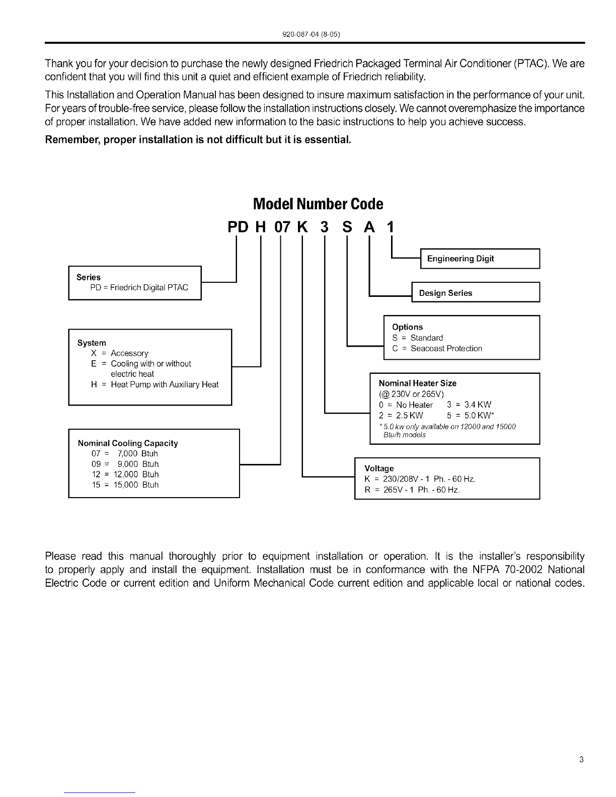 Internal Diagnostic ThenewFriedrichdigitalPTACfeaturesaselfdiagnosticprogramthatcanalertmaintenancetocomponentfailuresoroperating