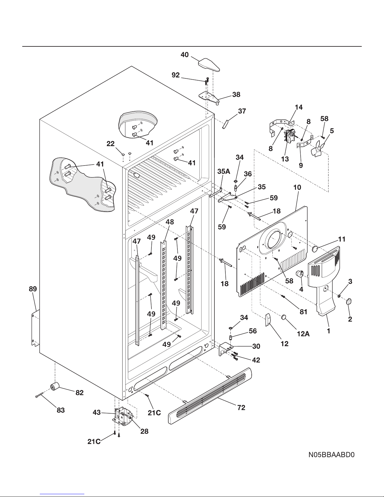 13 # 240369701 A B C Motor-evap fan