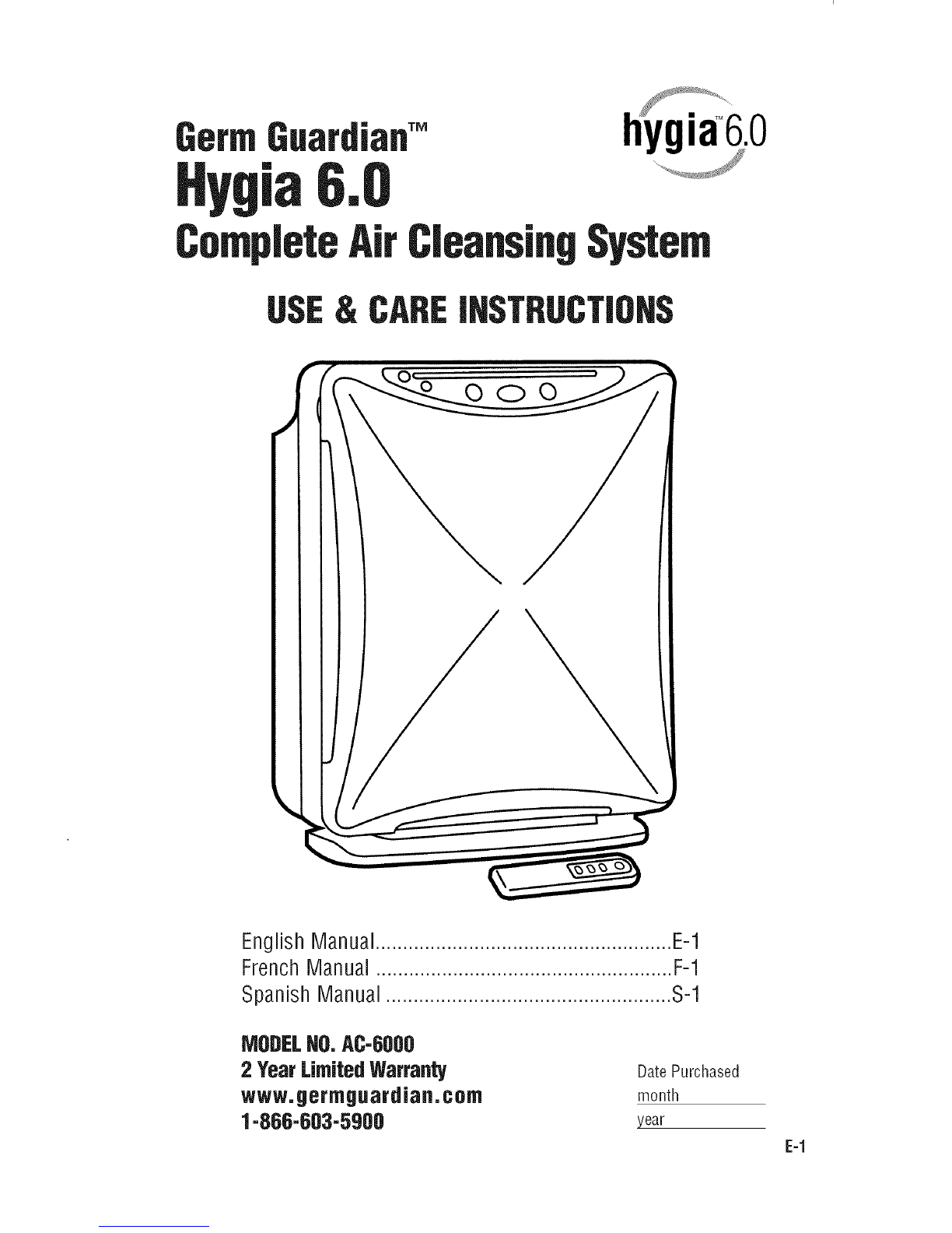 a. The green 'Clean Air' indication light in the center of the 'Home