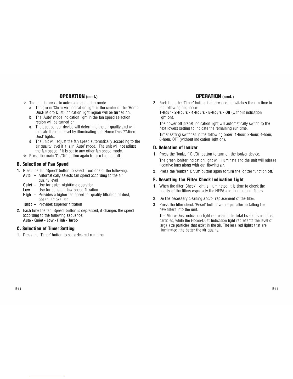 Auto =Quiet -Low -High -Turbo