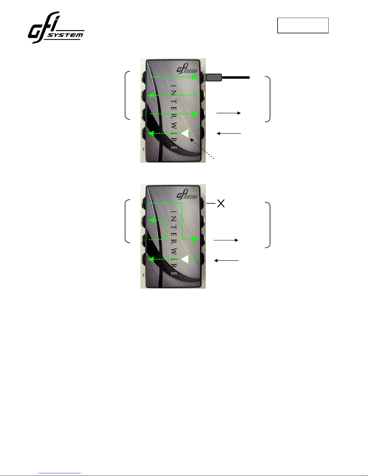 Interwire has 2 switchable internal wiring configuration, one is intended for setup that places