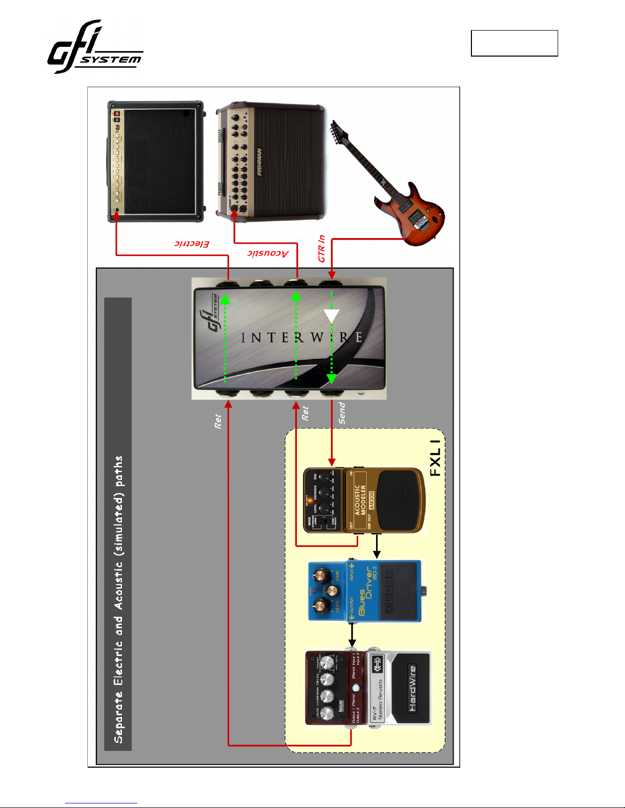 for setup that places effects before the amp’s input and inside the amp’s FX-loop (see illus-