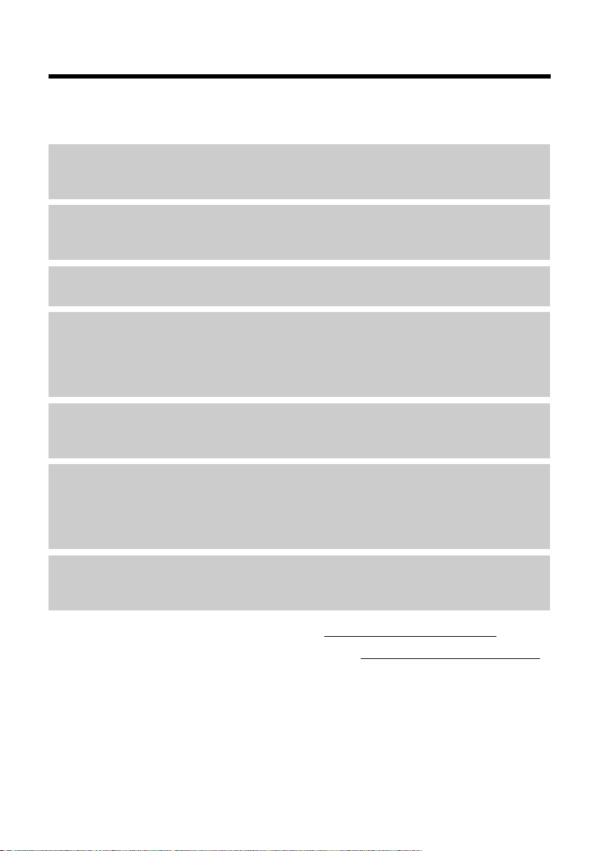 Answering machine list (Gigaset SL400A only) . . . . . . . . . . . . . . . . . . . . . . . . . . . . . . . . 40
