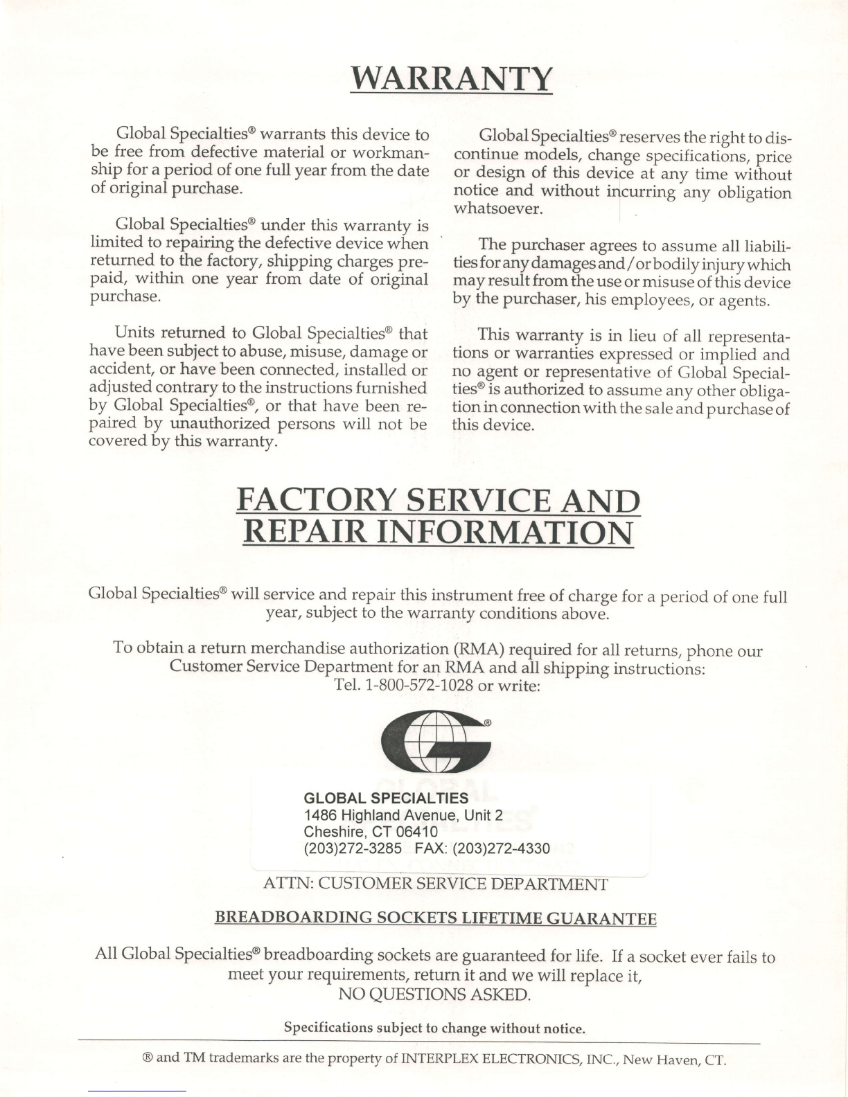 and TM trademarks are the property of INTERPLEX ELECTRONICS, INC., New Haven, CT.