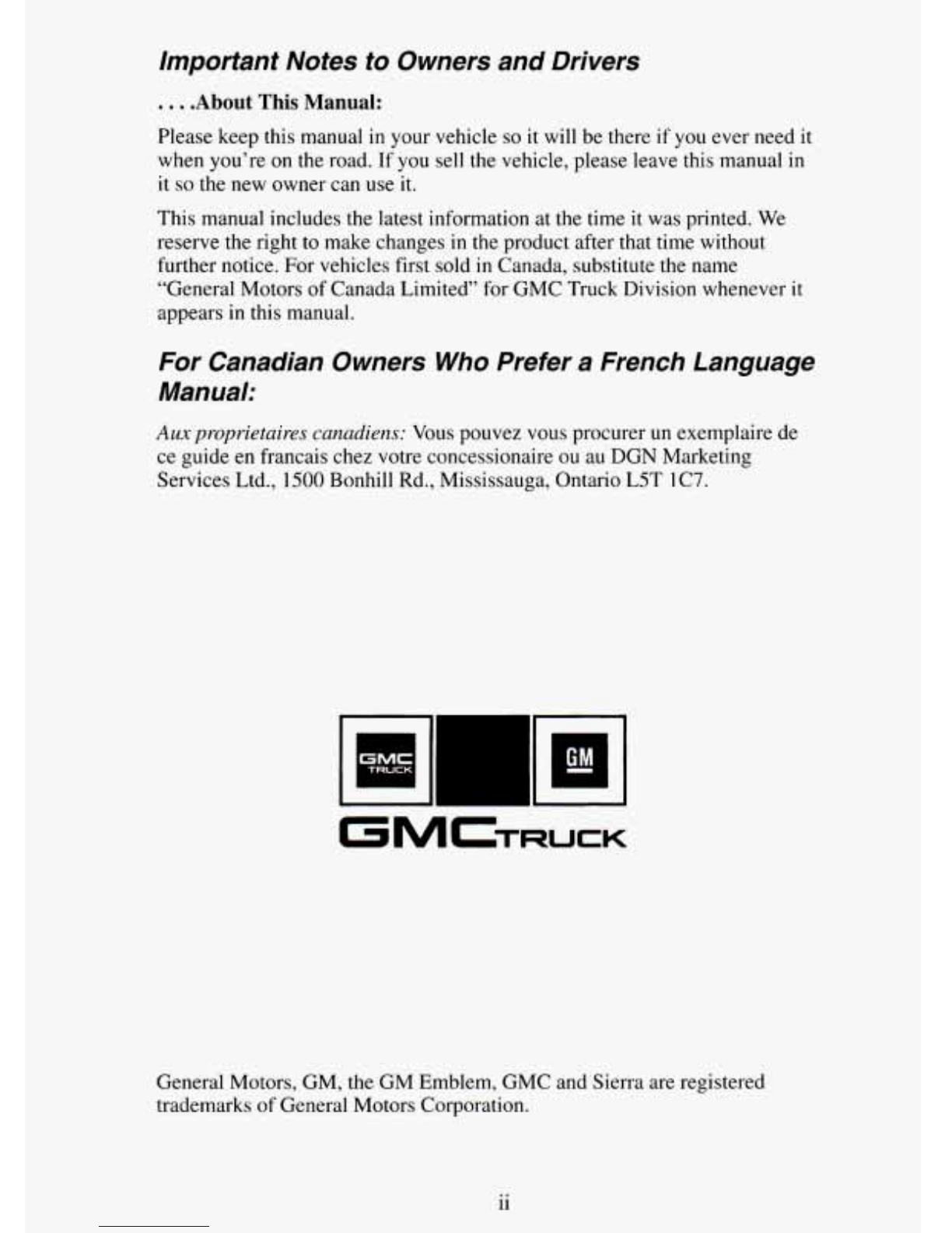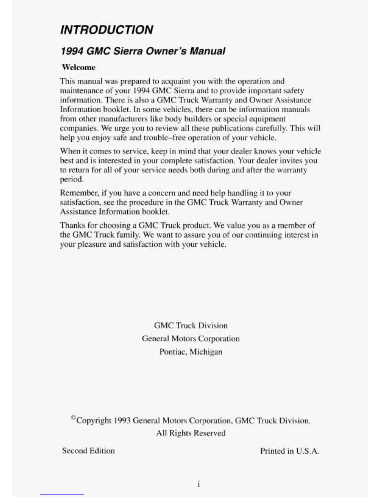 GMC SIERRA 1994 Manuale utente