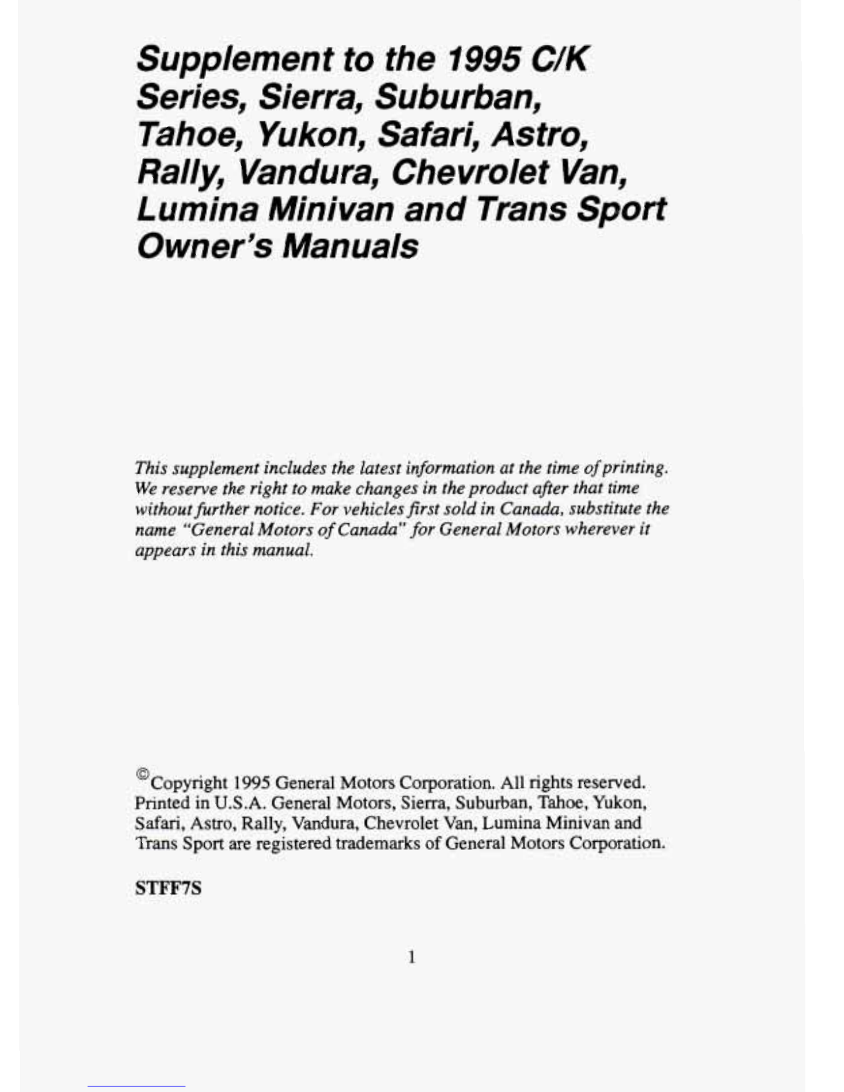 GMC SIERRA 1995 Manuale utente