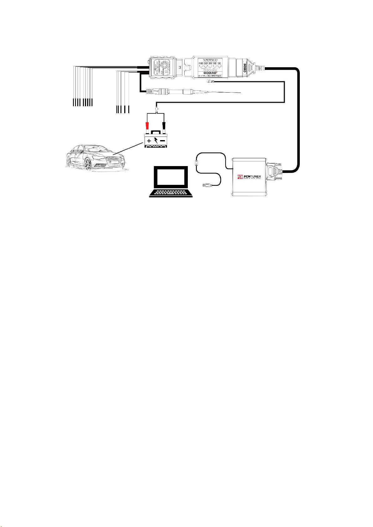 2. Connect the Godiag ECU IMMO Prog AD and connect the 12V vehicle battery.(The Godiag ECU