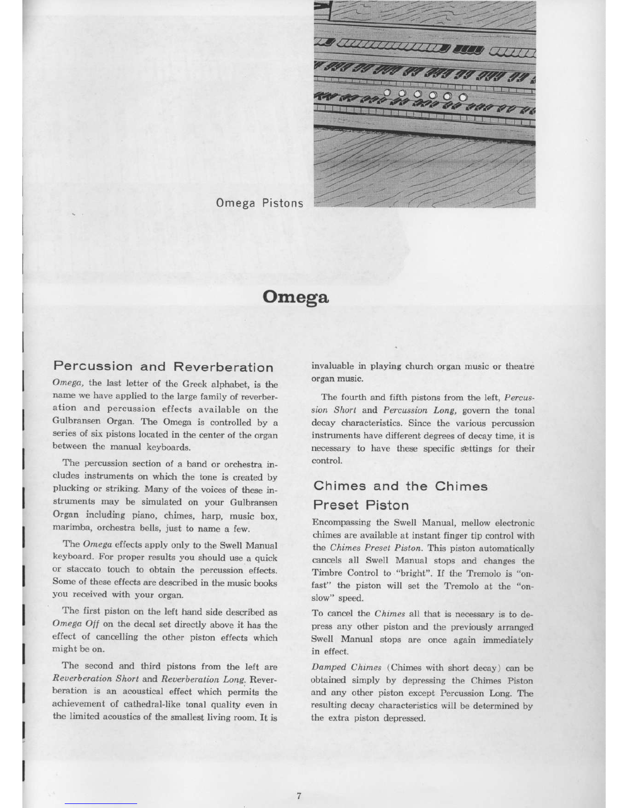 Gulbrans€n Organ. lbe Omega i! controlled by a